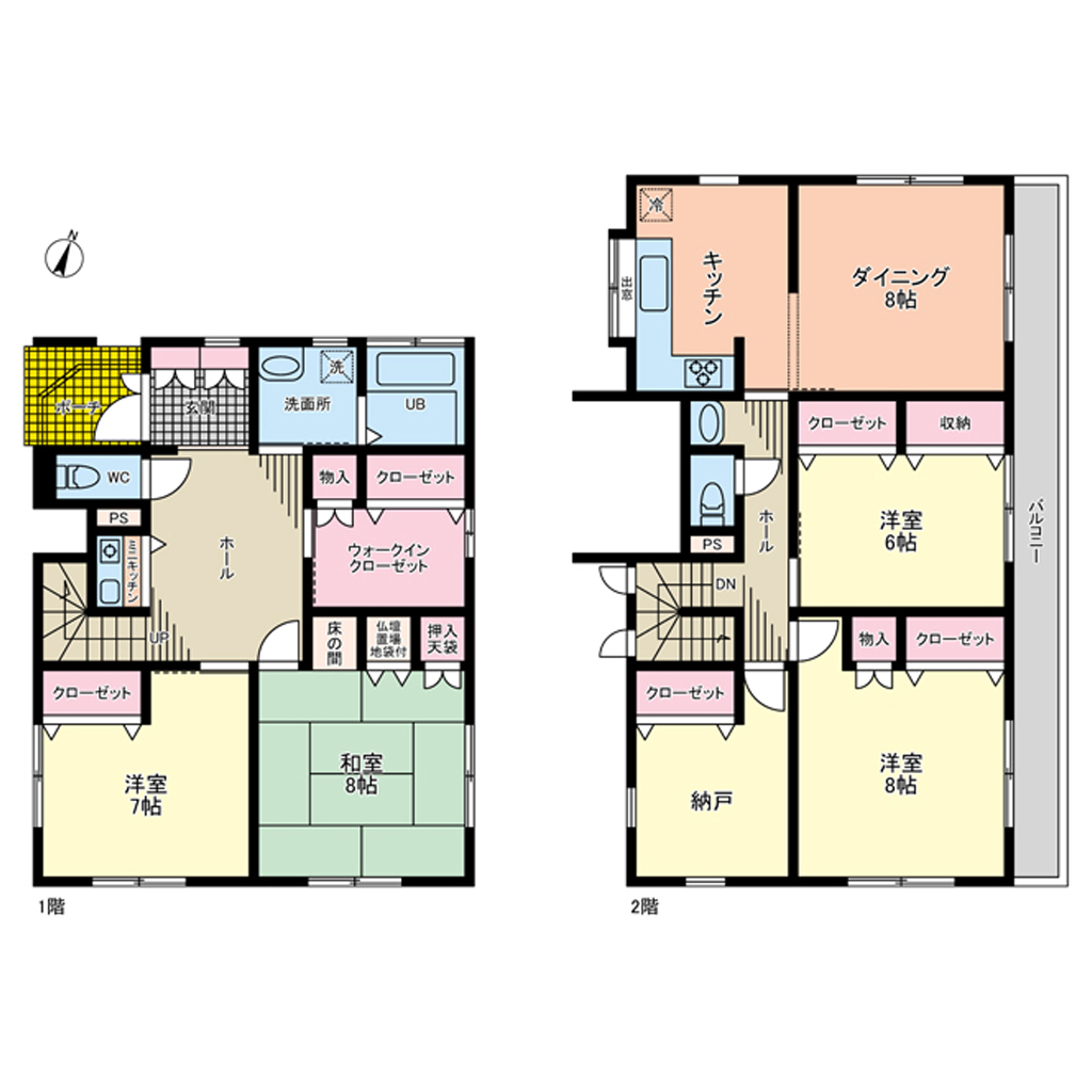 洋室7畳 1階 1室 和室8畳 1階 1室 S3畳 1階 1室 K6畳 2階 1室 DK8畳 2階 1室 洋室6畳 2階 1室 洋室8畳 2階 1室 S5畳 2階 1室 |