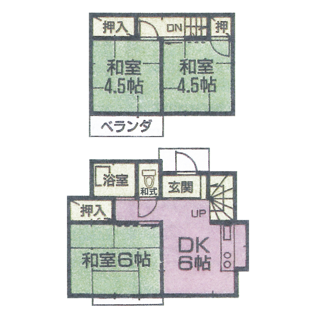 和室6畳 1階 1室 和室4.5畳 2階 2室 DK6畳 1階 1室 |